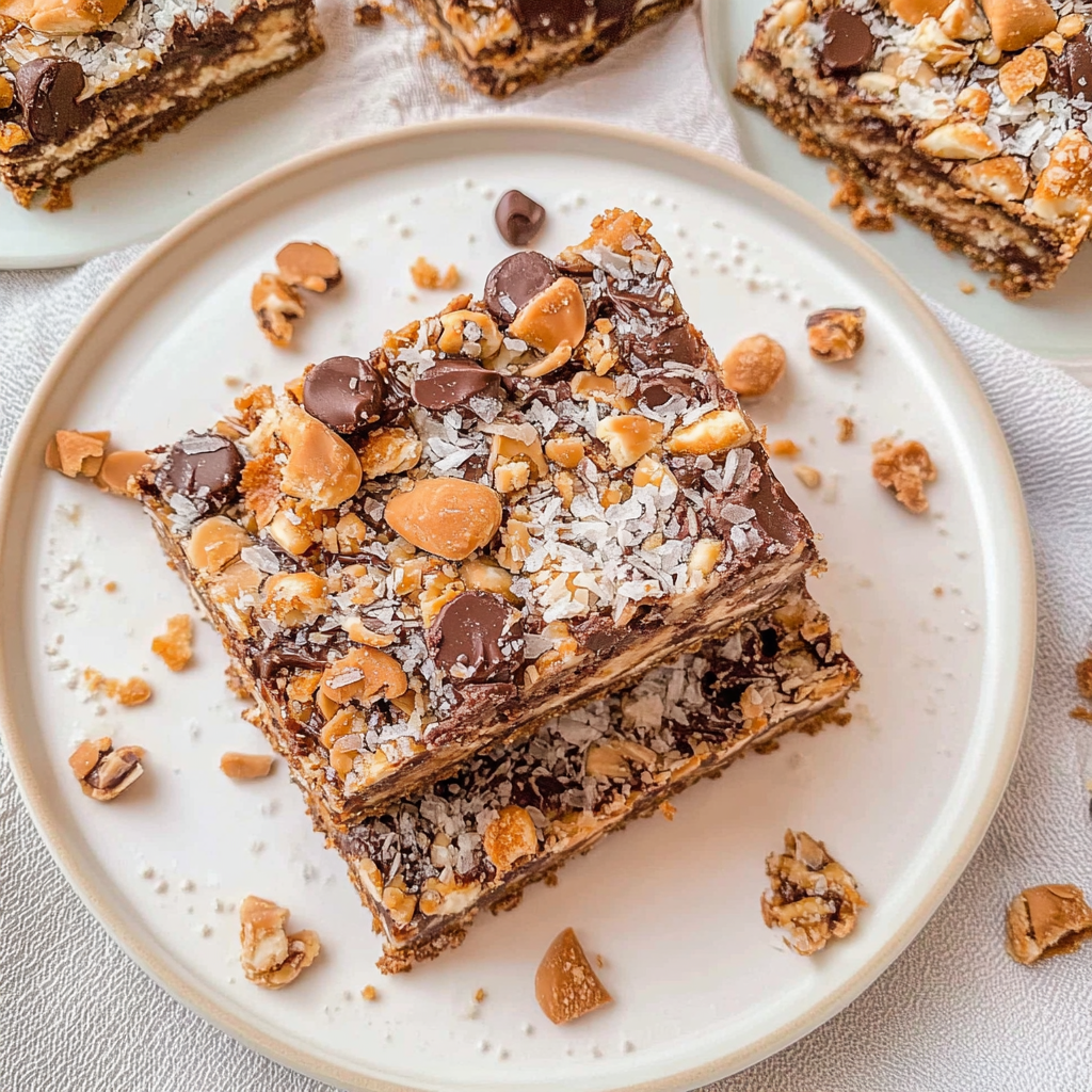 Store leftover 7 layer bars in an airtight container at room temperature for up to a week. For reheating, pop them in the microwave for about 10 seconds to regain that gooey goodness without drying them out.