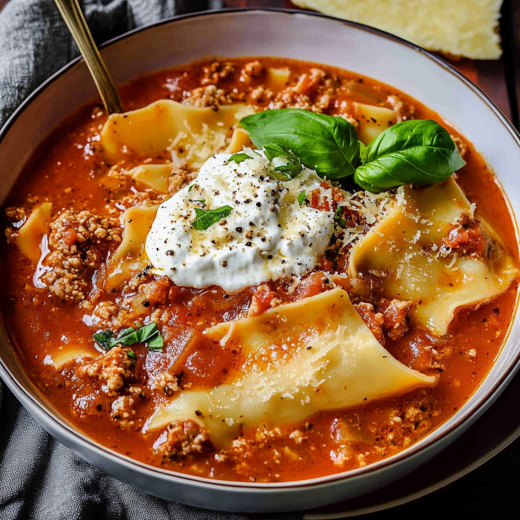 Lasagna Soup is a heartwarming dish that combines the beloved flavors of traditional lasagna into a comforting bowl of soup. With layers of rich ground meat, tender pasta, and creamy cheese simmered in a savory broth, this delightful recipe is perfect for chilly evenings or family gatherings. Easy to whip up and highly customizable, Lasagna Soup brings warmth and satisfaction to your dinner table in no time.