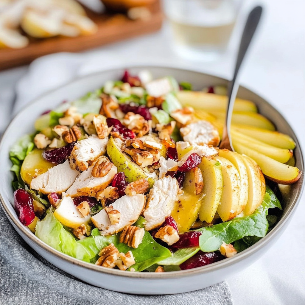 I first stumbled upon this delightful creation during one of my infamous “let’s-try-something-new” cooking nights. After seeing the ingredients in my fridge staring back at me, I decided to piece together this salad for a small family get-together. Little did I know it would become an instant favorite, with everyone asking for seconds—or was it thirds? Regardless, it was clear that this Winter Pear and Walnut Chicken Salad was destined to be part of our holiday traditions.