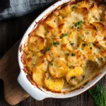 Indulge in the comforting flavors of Brown Butter Potato and Leek Bake. This dish features layers of creamy Yukon Gold potatoes, sweet sautéed leeks, and a rich brown butter sauce, all topped with melty cheese. Perfect for cozy dinners or special occasions, this bake is sure to impress with its warm aroma and delightful taste. Gather your loved ones around the table and enjoy every bite of this heartwarming dish.