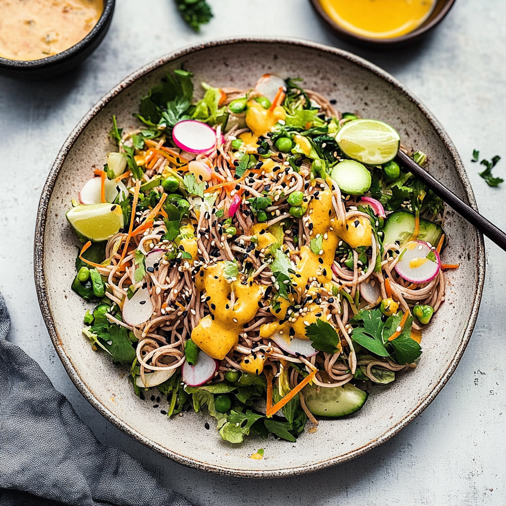 In conclusion, mastering the art of making an Asian Soba Noodle Salad brings joy not just on your plate but also around your table. With easy-to-follow steps and endless customization options, it suits every occasion from casual weeknight dinners to festive gatherings. Whether you keep it simple or jazz it up with proteins and unique toppings, this dish promises flavor-packed satisfaction every time you whip it up!