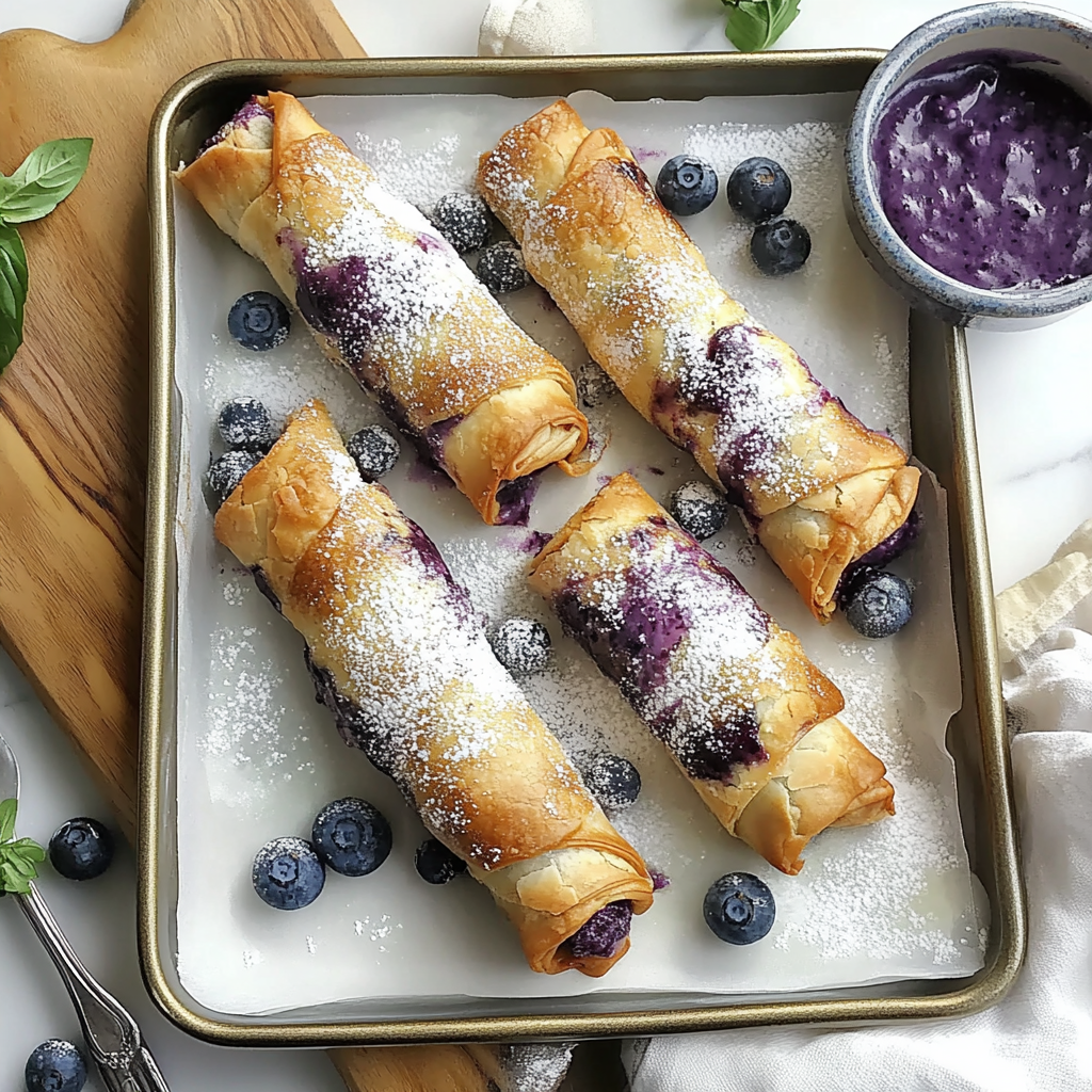 In summary, Blueberry Cream Cheese Egg Rolls are a deliciously unique dessert that combines creamy filling and crispy texture. By following simple steps, you can easily create these treats at home using fresh or frozen ingredients. They make an impressive addition to any gathering and can be customized with various toppings or dips. Whether enjoyed warm or cold, these egg rolls are sure to please your taste buds!