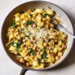 Combine Pasta and Sauce: Once your pasta is cooked to perfection, drain it (reserve some pasta water) and add it directly into the skillet with chickpeas. Toss everything together, adding reserved pasta water as needed to create a silky sauce.