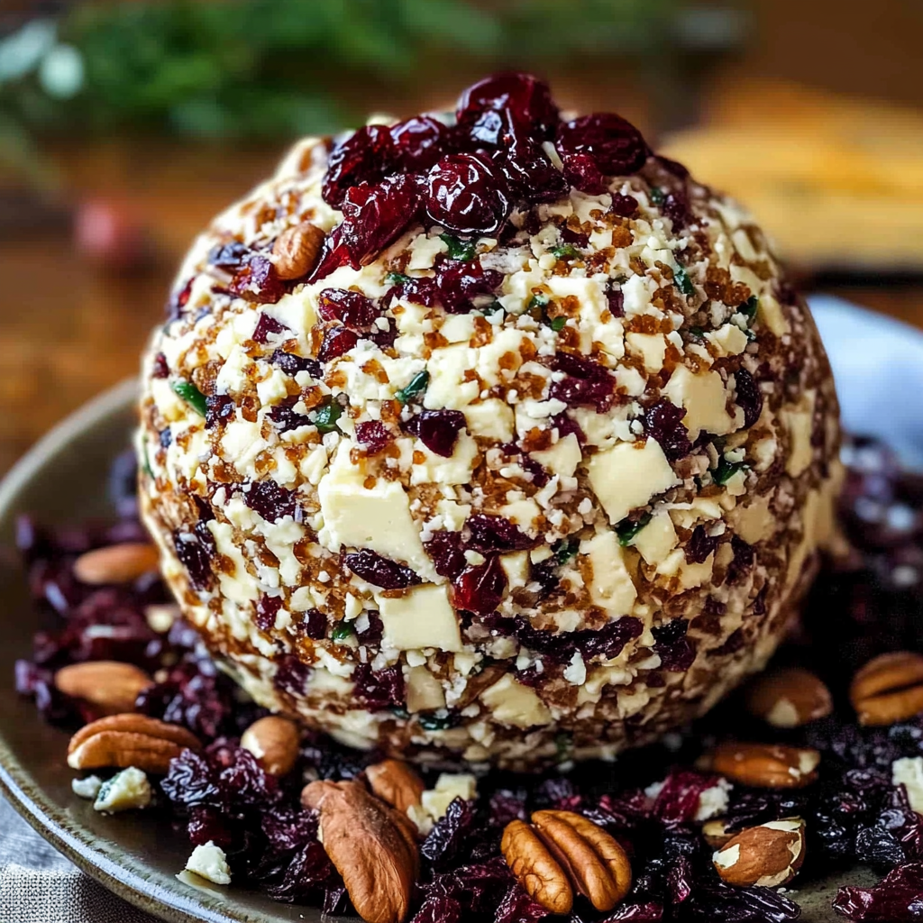 Christmas Party Cheese Ball with Dried Cranberries & Pecans