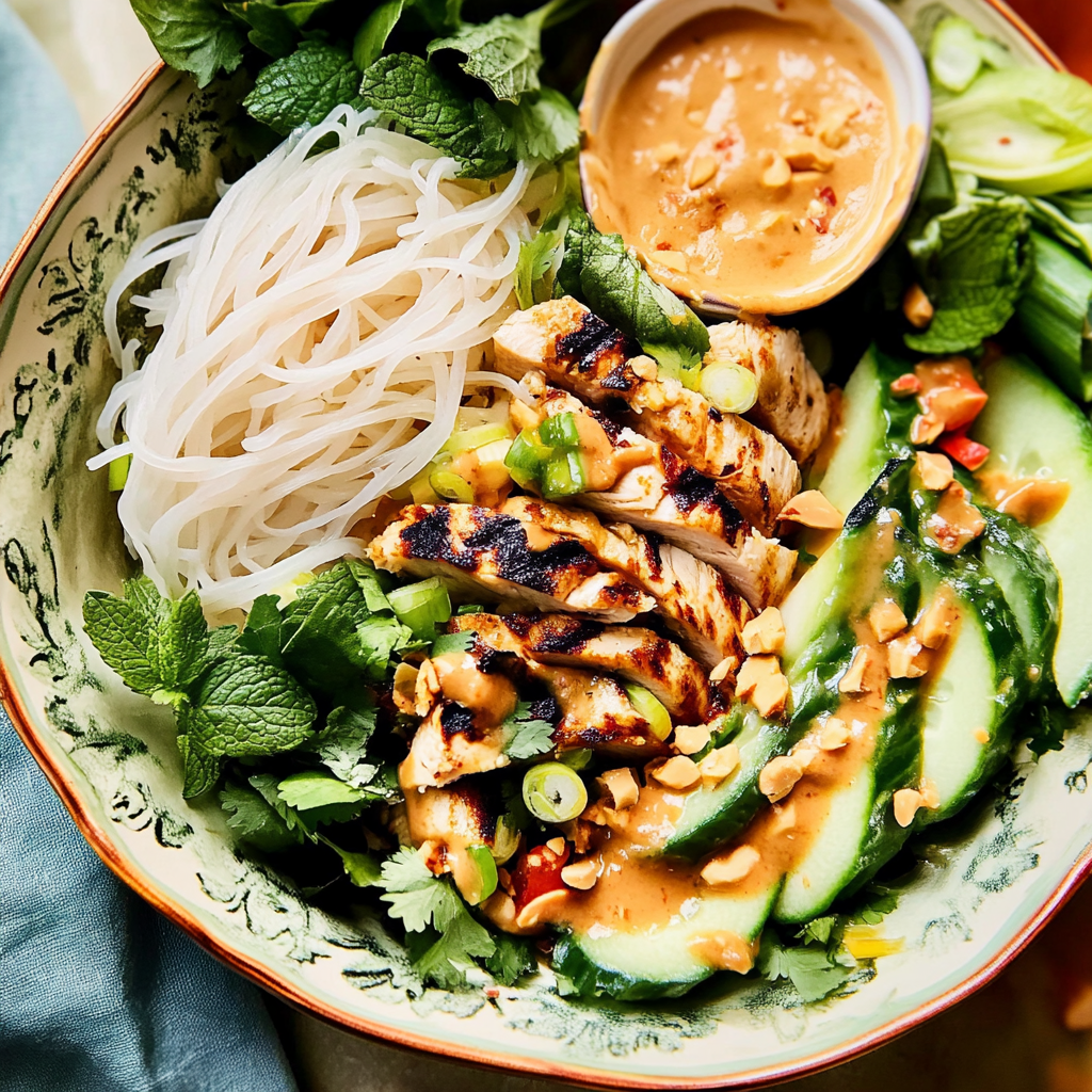Flavorful Chicken Spring Roll Bowls with Peanut Sauce