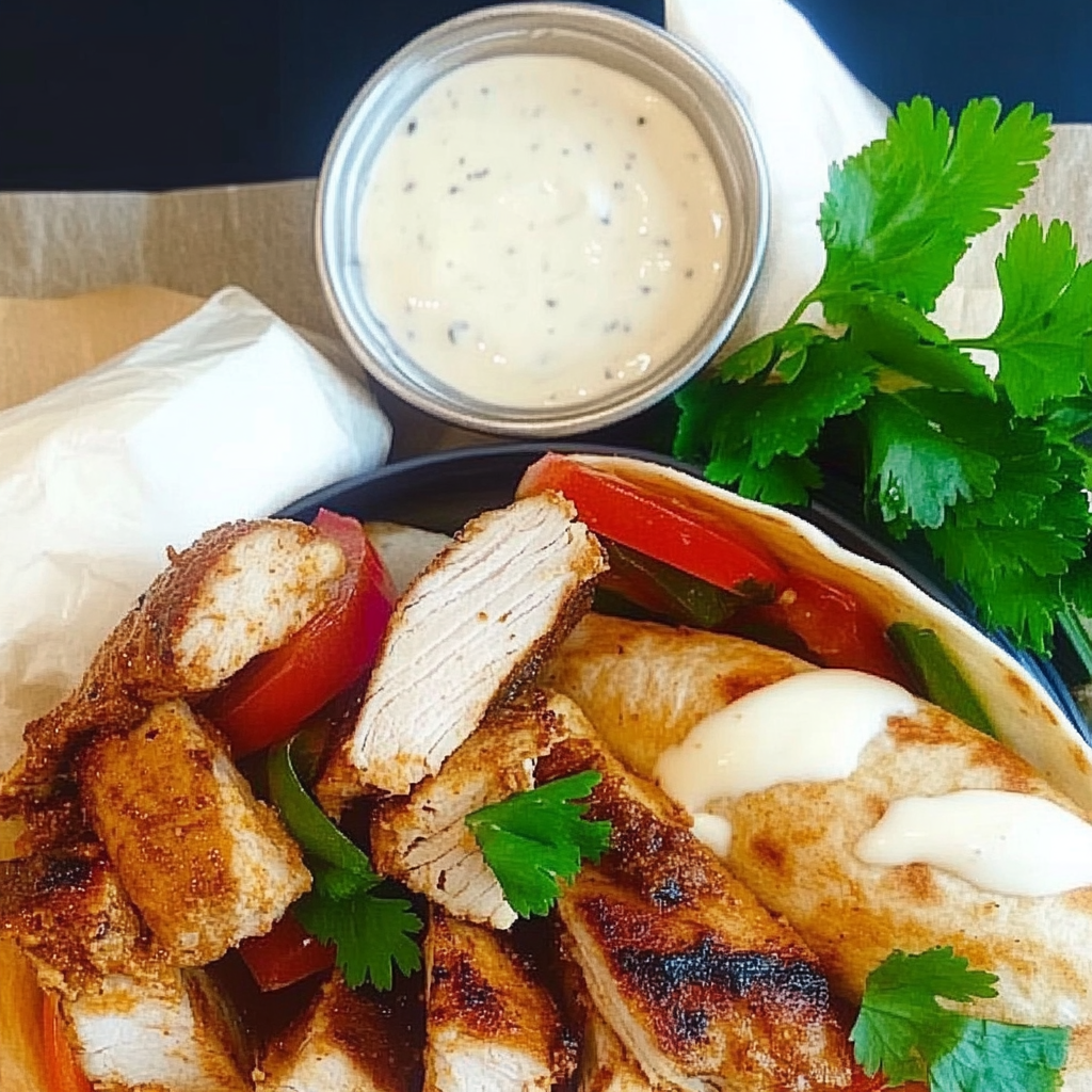 Chicken Shawarma with Garlic Sauce is a Middle Eastern dish featuring marinated chicken that’s roasted or grilled until tender and served with a creamy garlic sauce, often wrapped in pita bread or served on a plate with fresh vegetables.