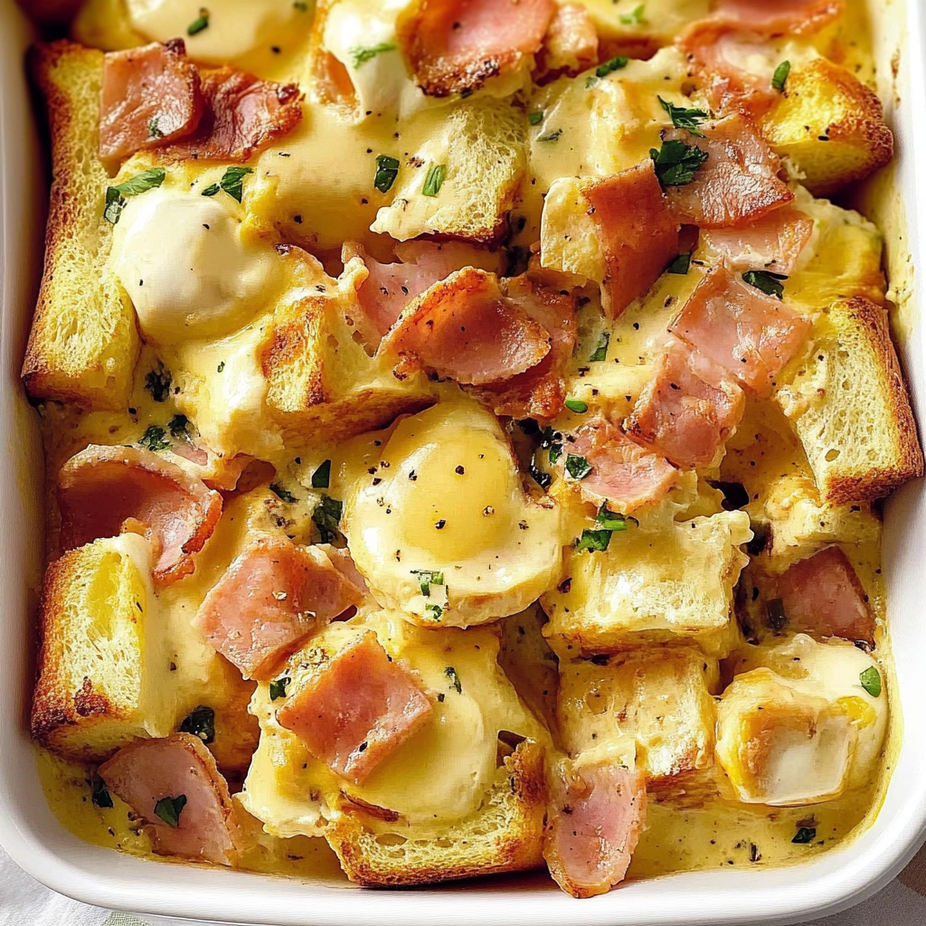 Eggs Benedict Casserole is a delicious twist on the classic Eggs Benedict, featuring layers of bread soaked in creamy egg mixture topped with savory ham and rich hollandaise sauce, all baked together into one scrumptious dish.