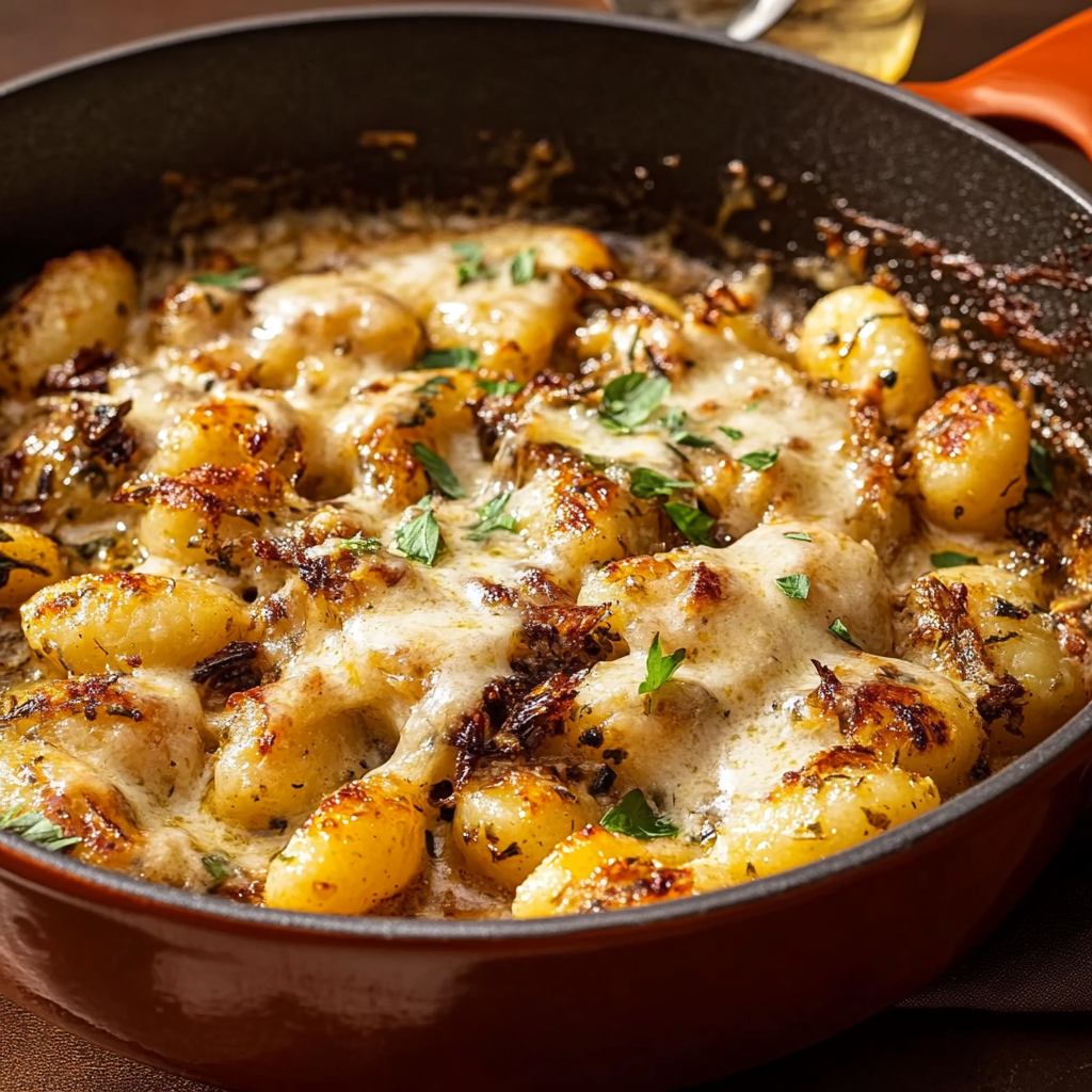 French Onion Gnocchi combines classic Italian potato dumplings with rich, savory flavors from caramelized onions and melted cheese. It’s comfort food elevated to gourmet status, offering a delightful twist on both gnocchi and onion soup.