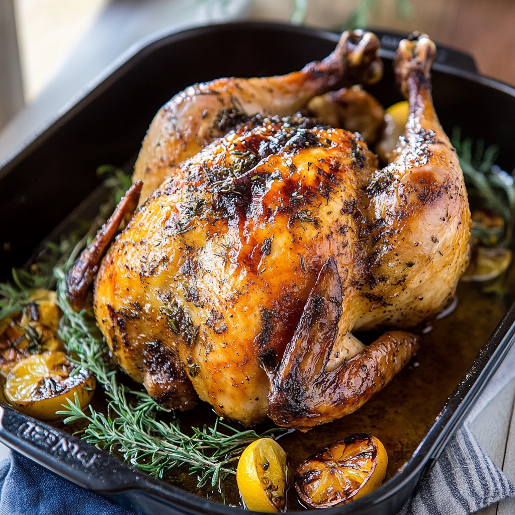 Add Lemon & Herbs : Stuff lemon wedges and any remaining herbs into the cavity of the chicken. This infuses moisture and adds zest during roasting.