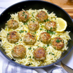 • This showstopping Greek Chicken Meatballs with Lemon Orzo delivers restaurant-quality results using simple ingredients you probably already have at home