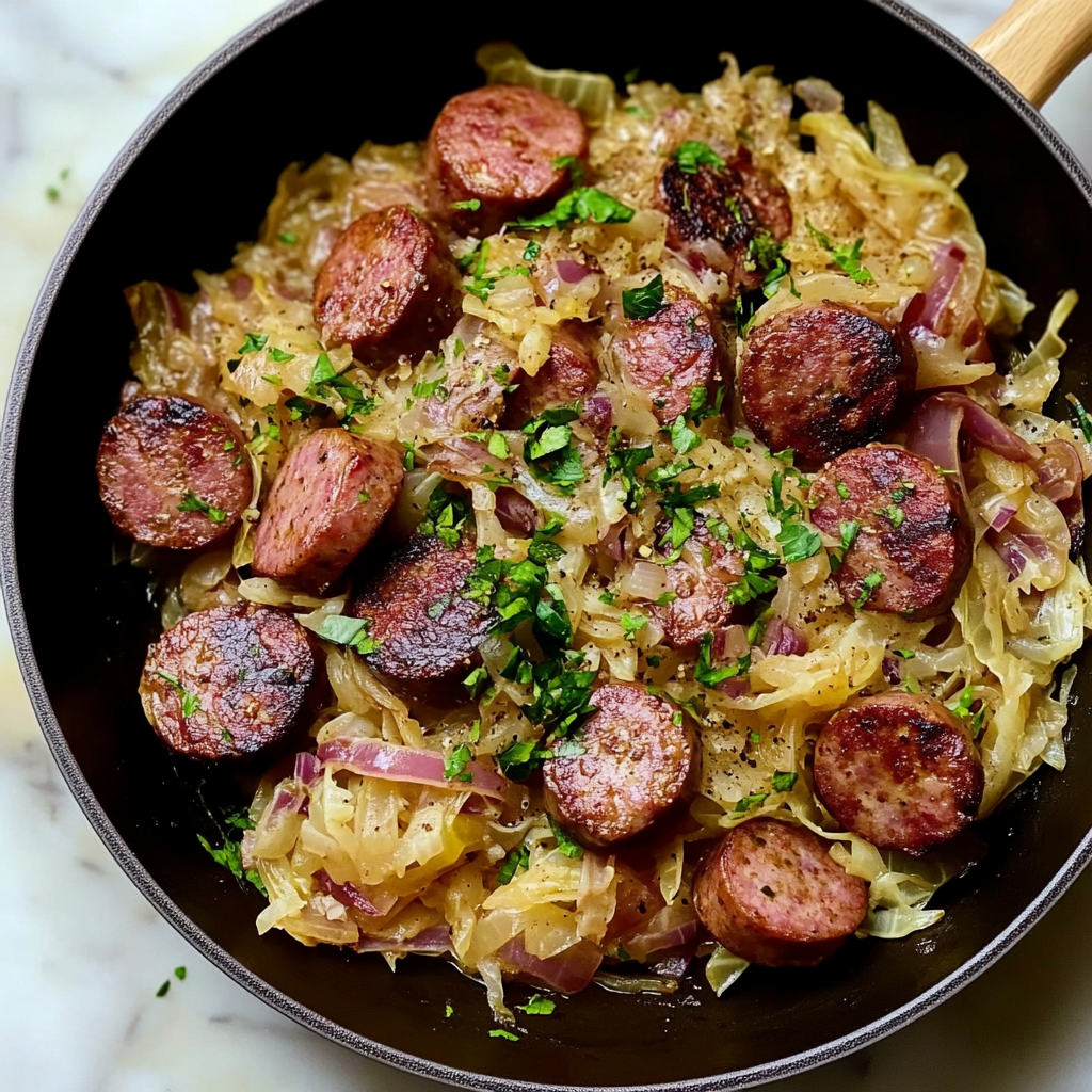 Kielbasa & Sauerkraut Skillet with Brown Sugar is a delightful dish that combines the savory flavors of juicy kielbasa and tangy sauerkraut, beautifully balanced by a hint of sweetness from brown sugar. This one-pan meal is not only easy to prepare but also perfect for family dinners or impressing guests. With its enticing aroma and vibrant colors, this skillet dish will become a favorite at your table.