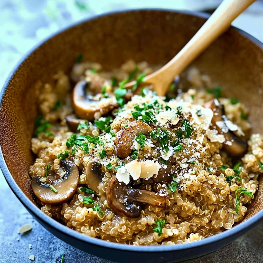 Mushroom Parmesan Quinoa Risotto is a creamy, comforting dish that brings together nutty quinoa and earthy mushrooms, all enveloped in a rich Parmesan sauce. This easy-to-make recipe transforms simple ingredients into an impressive culinary experience, perfect for cozy weeknights or elegant gatherings. With its stunning presentation and delightful flavors, this risotto will surely become a new family favorite, leaving everyone asking for seconds.