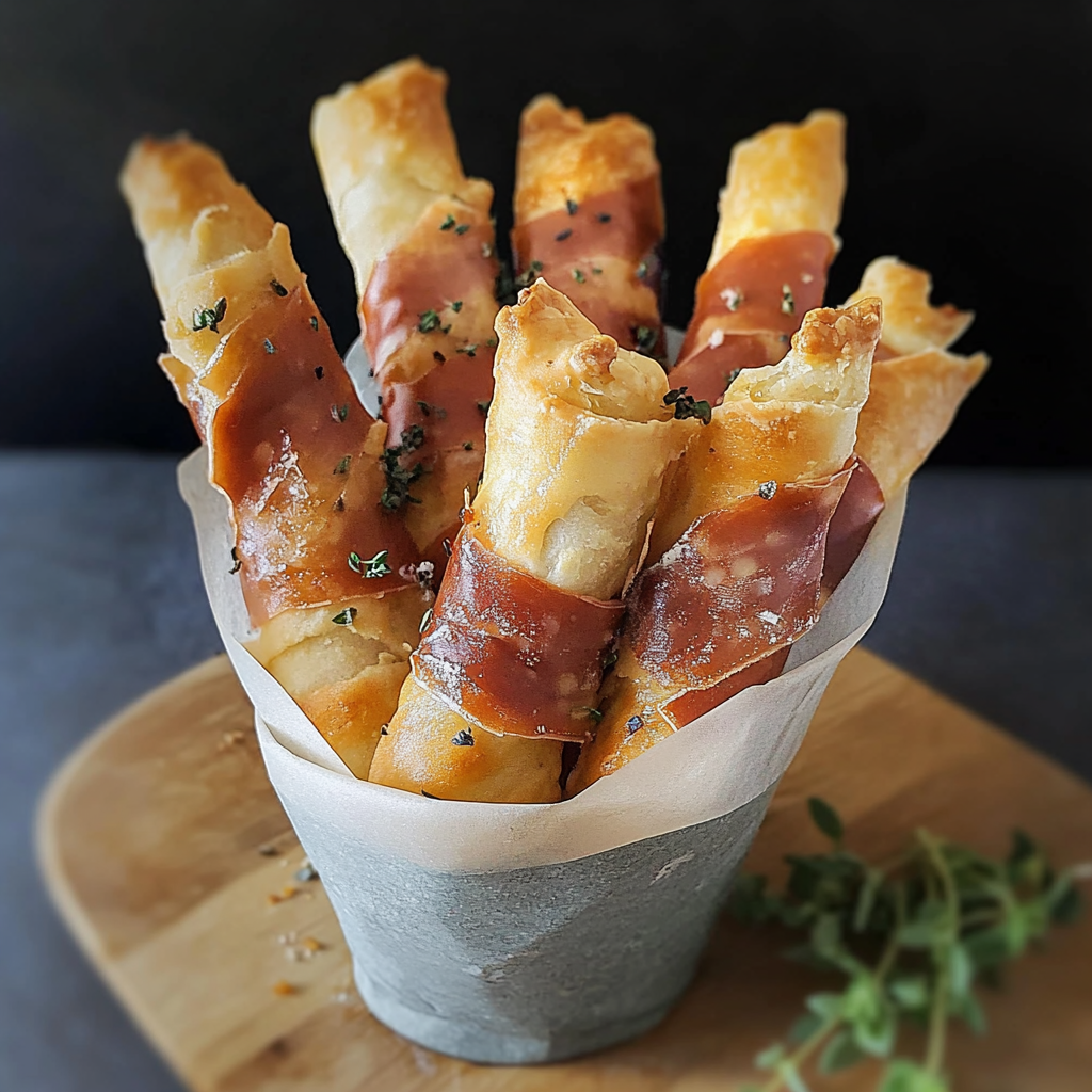 Prosciutto Wrapped Breadsticks with Honey Butter are a delectable combination of crispy and savory flavors, perfect for any occasion. The salty richness of prosciutto paired with sweet honey butter creates an irresistible treat that will keep your guests coming back for more. Whether for a cozy dinner at home or a festive gathering, these breadsticks elevate any meal into a memorable experience, all while being easy to prepare.