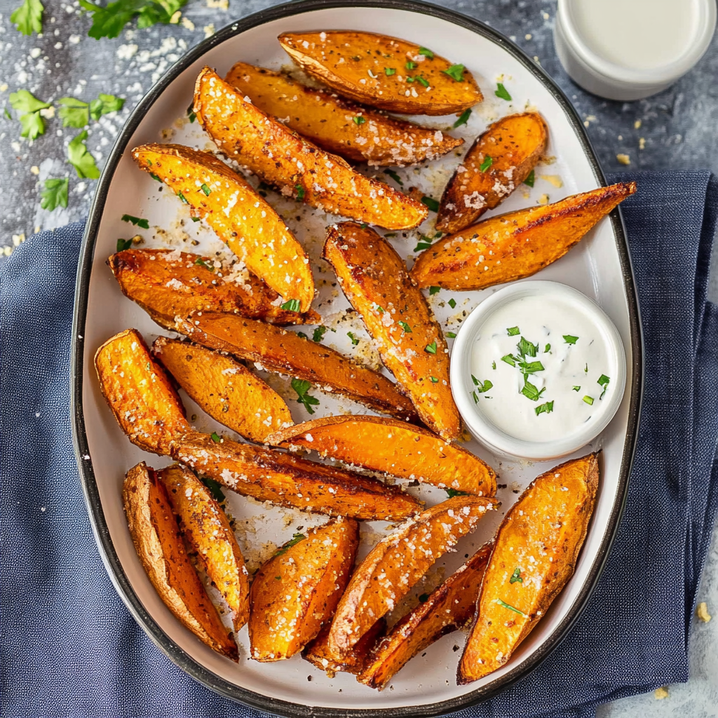 Picture this: a cozy gathering with friends or a movie night at home, and these delightful wedges steal the show. The combination of sweet potatoes, savory herbs, and creamy dip will have everyone reaching for more.