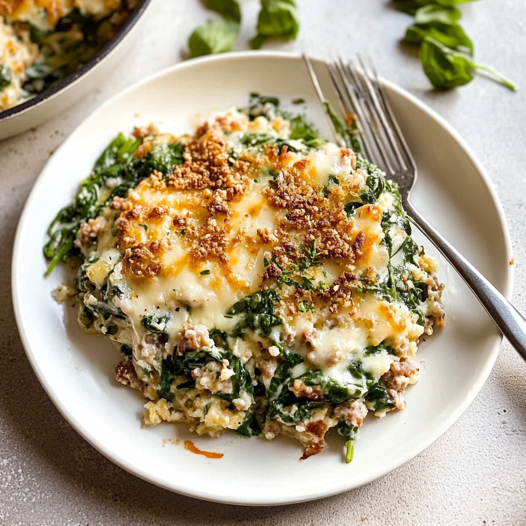 HomeComfort & Family FavoritesIrresistible Spinach Gratin with Sausage and Rice Recipe