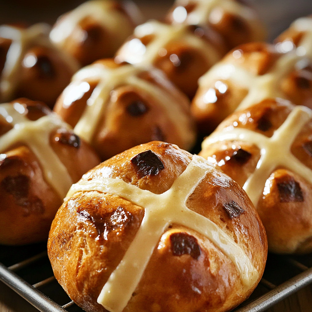 Indulge in the warmth and nostalgia of Traditional Hot Cross Buns, perfectly fluffy and spiced with cinnamon and nutmeg. These golden-brown treats, dotted with currants and finished with a sweet icing cross, are ideal for any occasion. Whether enjoyed fresh from the oven or toasted with butter, they promise to fill your home—and heart—with delightful comfort.