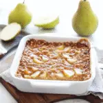 Let cool: Once out of the oven, let it cool slightly before serving! The smell will be irresistible as you cut into those warm layers filled with sweet pear goodness.